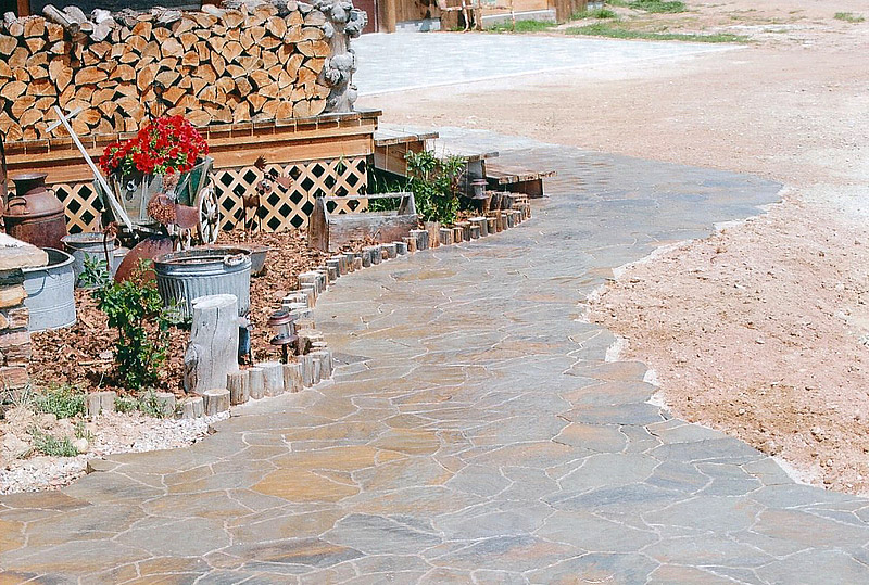 - These could be paved either with stone, brick or concrete walkway pavers and can have an edging of the same stone